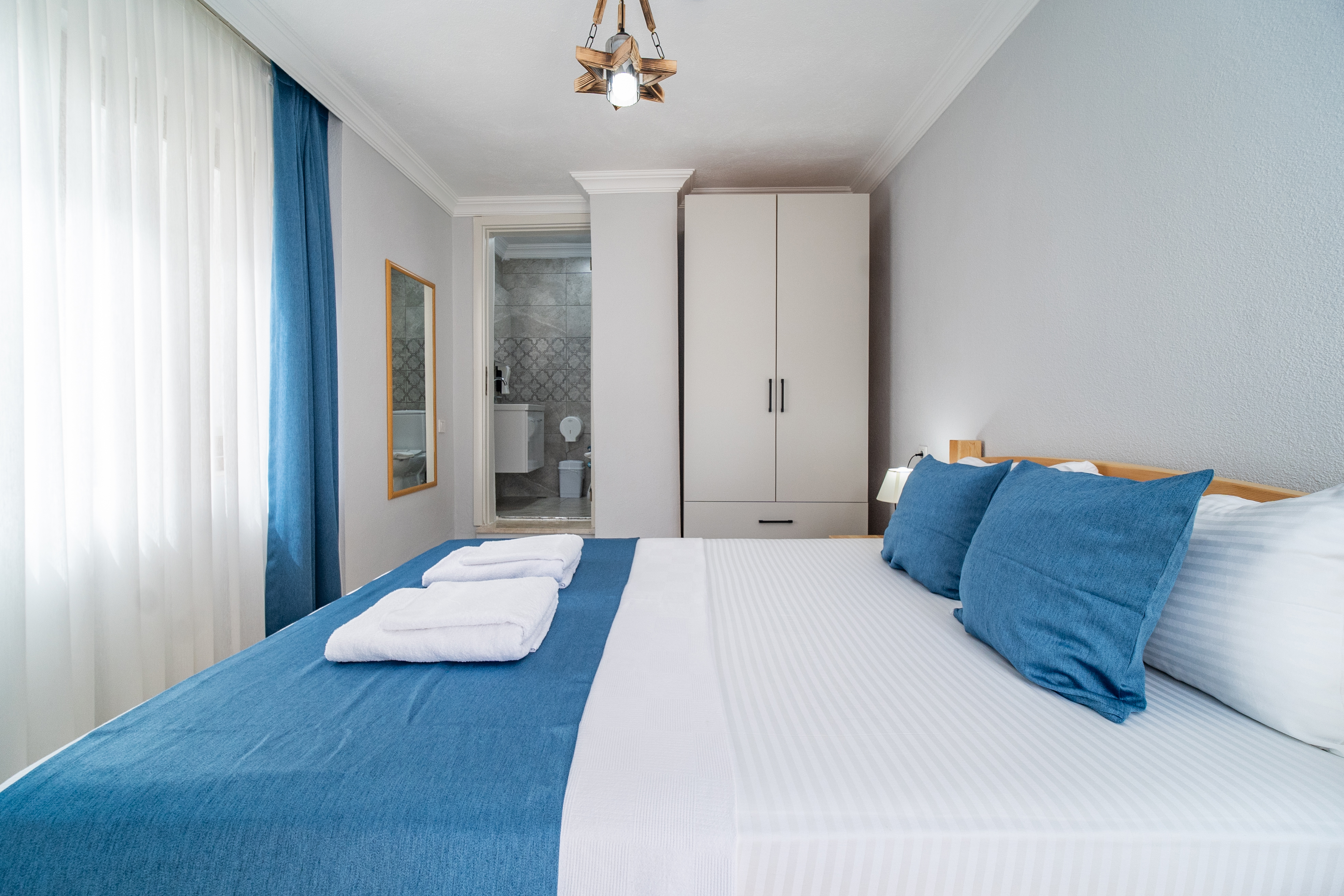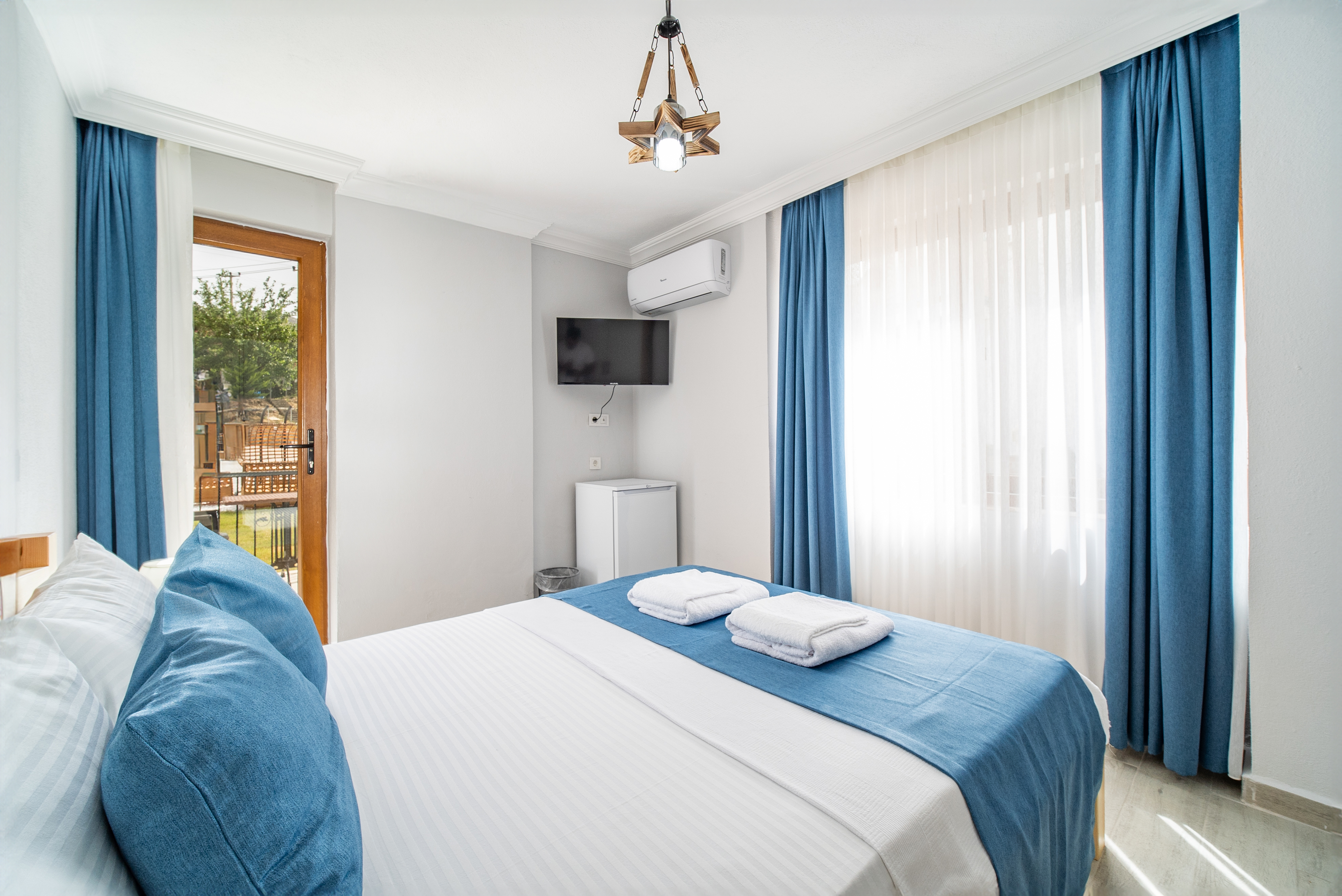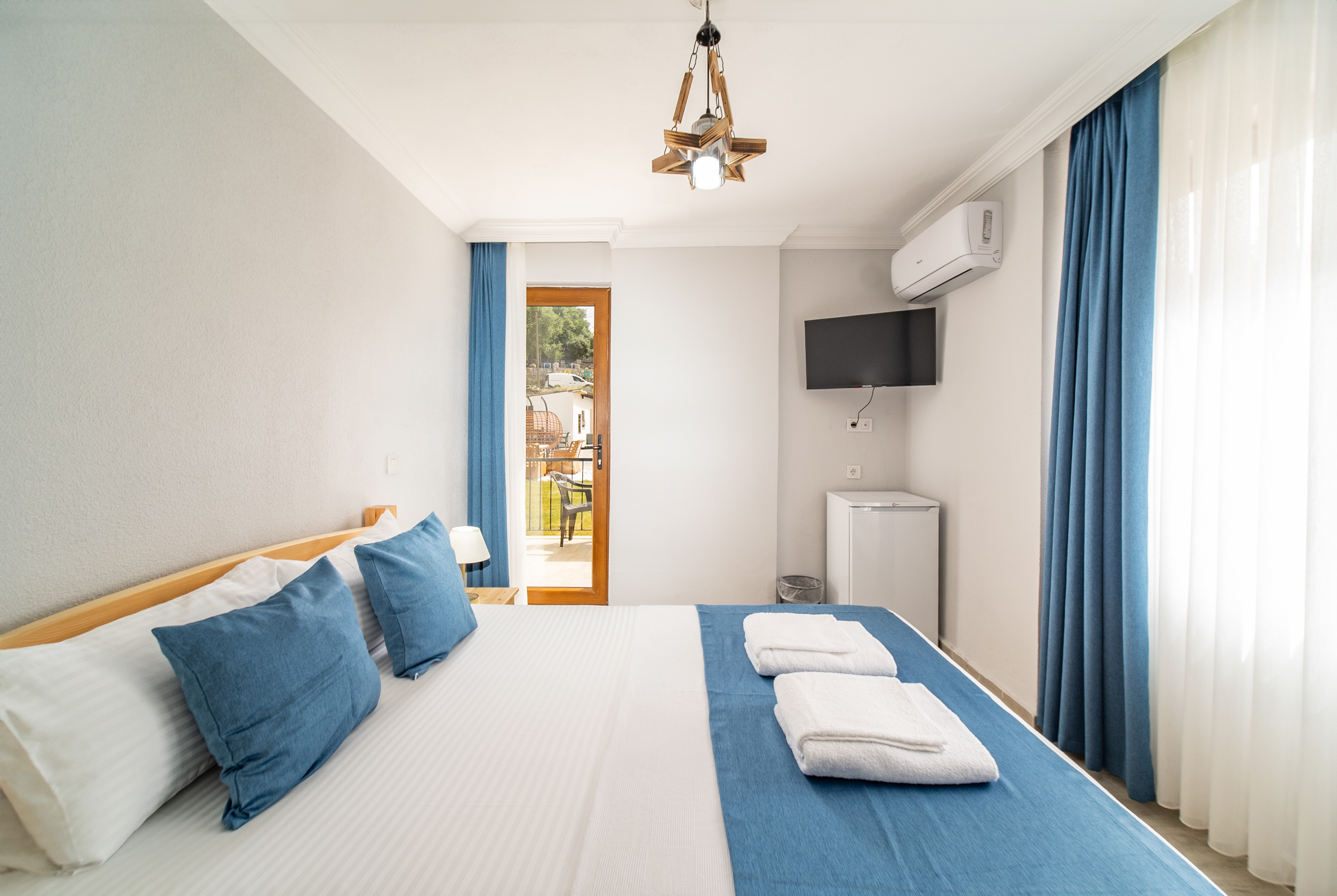 40 m²Çift kişilik odalarımız, doğa ile iç içe huzurlu bir atmosferde konaklama imkânı sunar. Odalarımızda bir adet çift kişilik yatak (veya isteğe bağlı olarak iki tek kişilik yatak), özel banyo, 24 saat sıcak su, klima, buzdolabı, uydu yayınlı televizyon ve ücretsiz Wi-Fi erişimi mevcuttur. Geniş pencereleriyle bahçe veya dağ manzarası sunan bu odalar, çiftler ve tek konaklayanlar için idealdir.