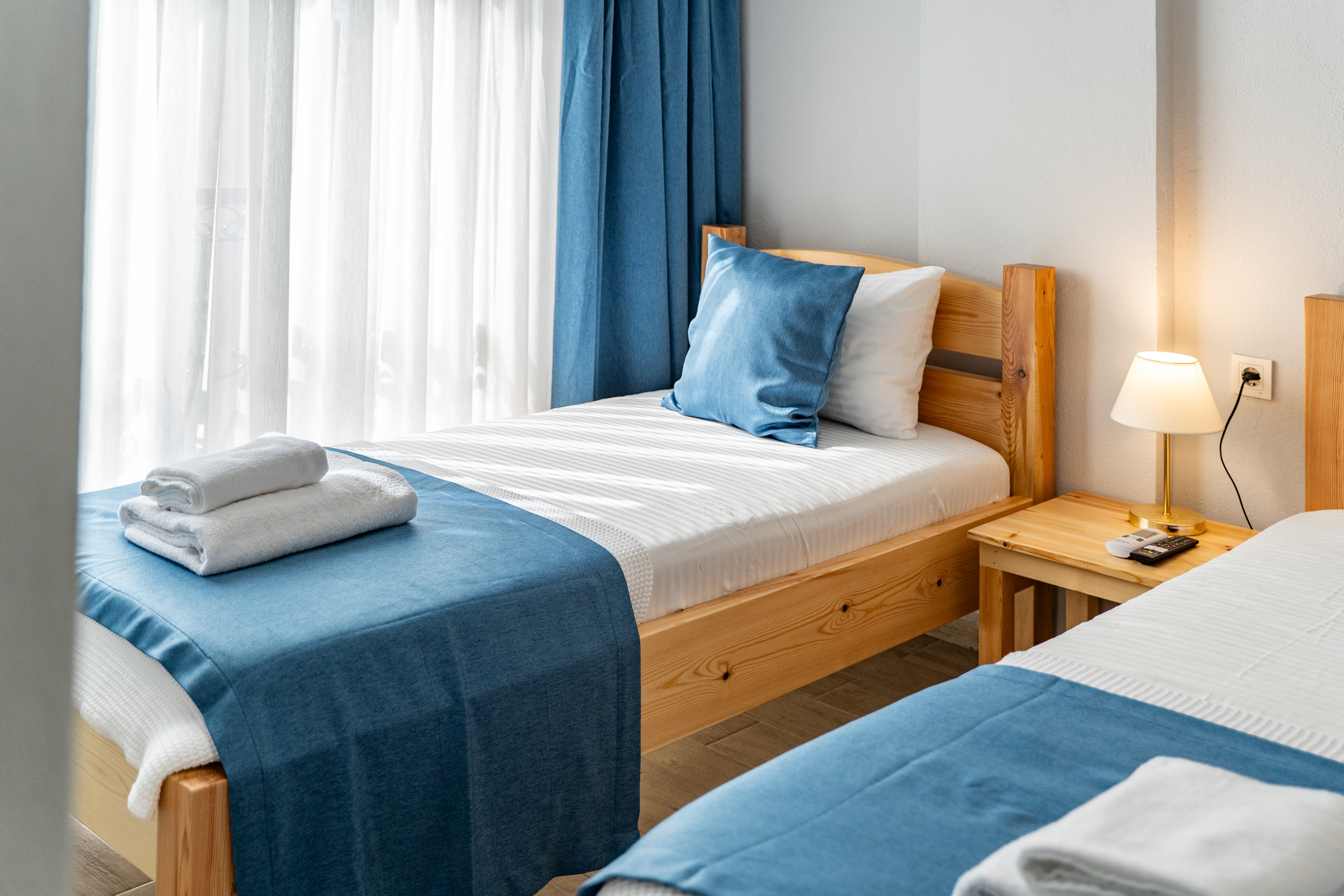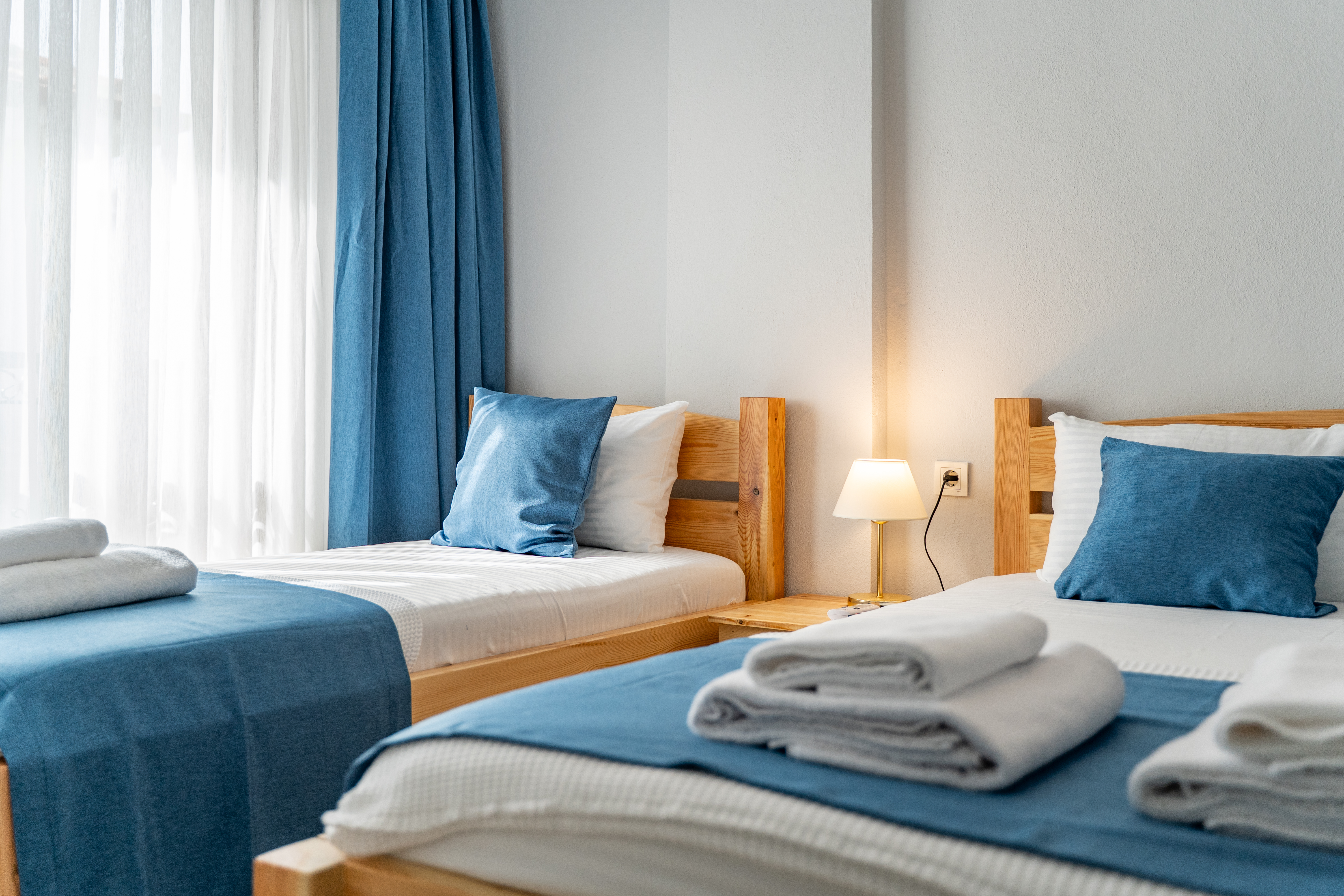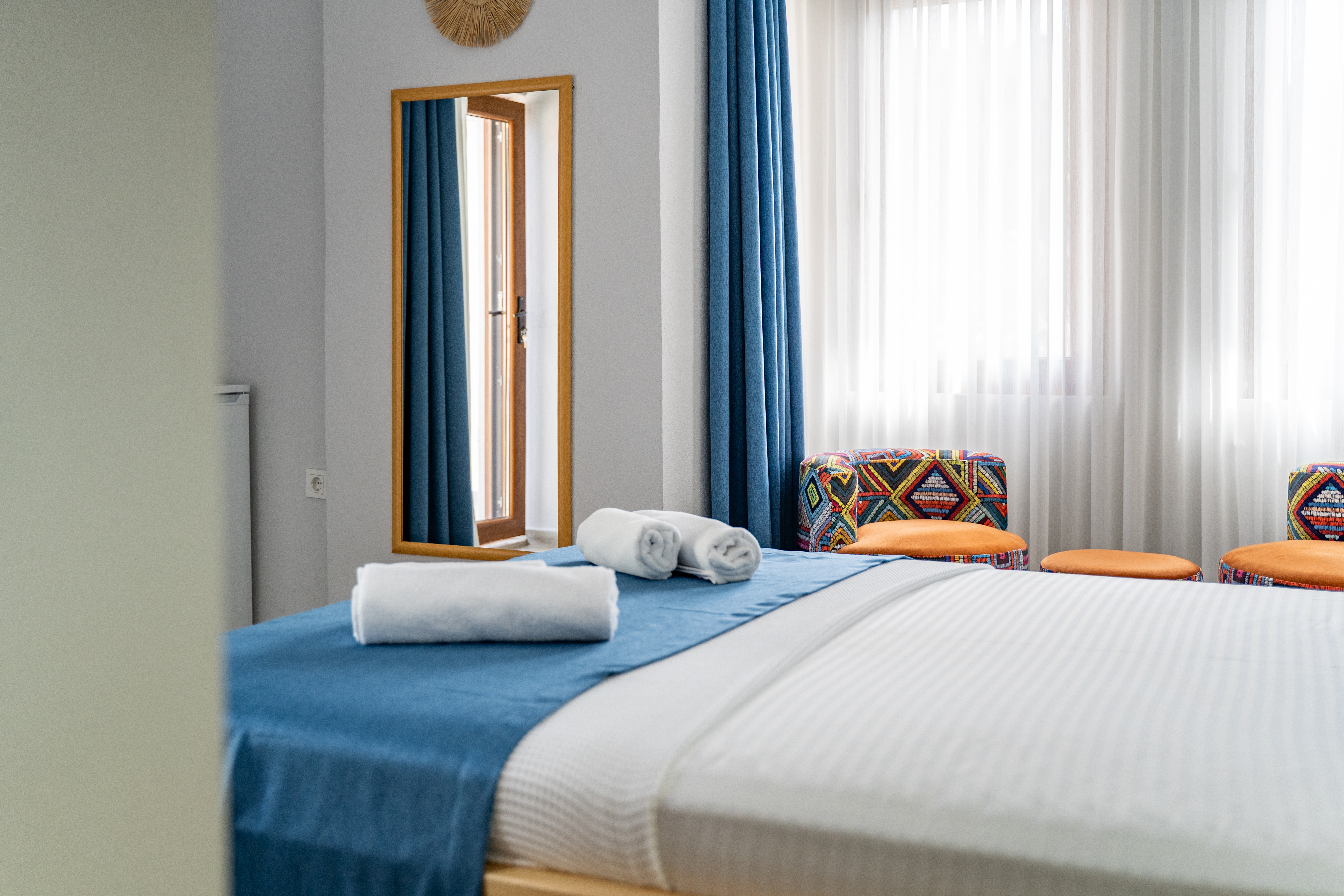 60 m²Üç kişilik odalarımızda bir çift kişilik ve bir tek kişilik yatak bulunmaktadır. Geniş yaşam alanı sayesinde aileler veya arkadaş grupları konforlu bir şekilde konaklayabilir. Odalarımızda özel banyo, 24 saat sıcak su, klima, buzdolabı, LED TV ve sınırsız Wi-Fi hizmeti yer almaktadır. Bazı odalarımız deniz manzaralıdır, diğerleri ise doğanın huzur veren yeşilliğine bakmaktadır.